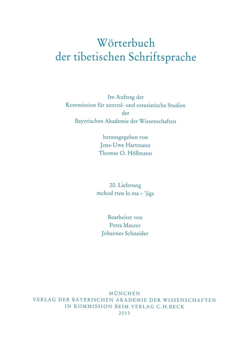 Wörterbuch der tibetischen Schriftsprache 20. Lieferung