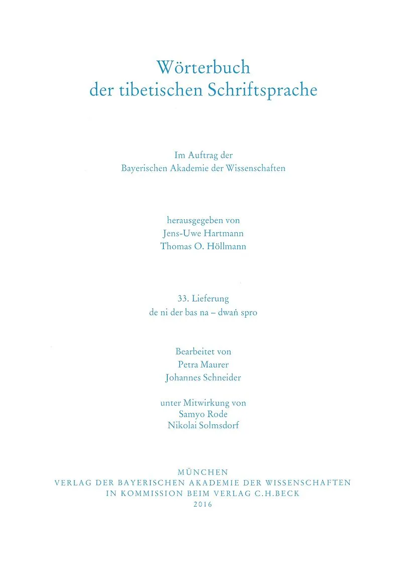 Wörterbuch der tibetischen Schriftsprache 33. Lieferung