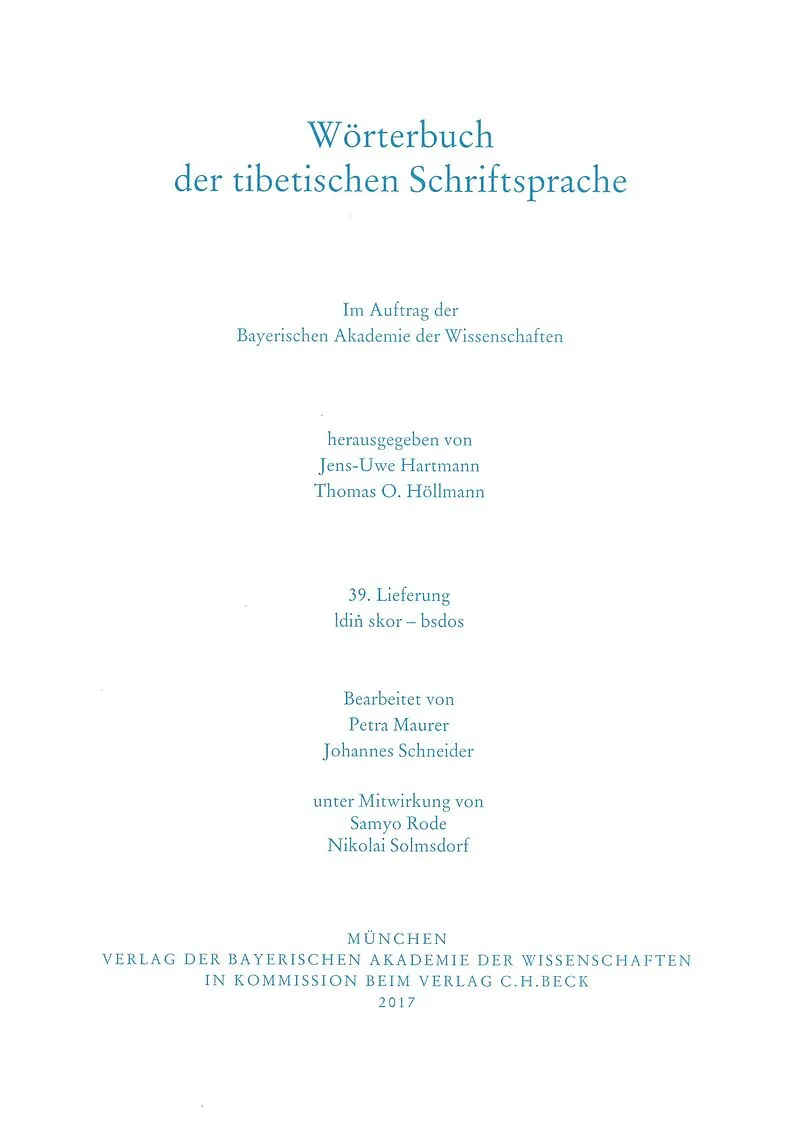 Wörterbuch der tibetischen Schriftsprache 39. Lieferung