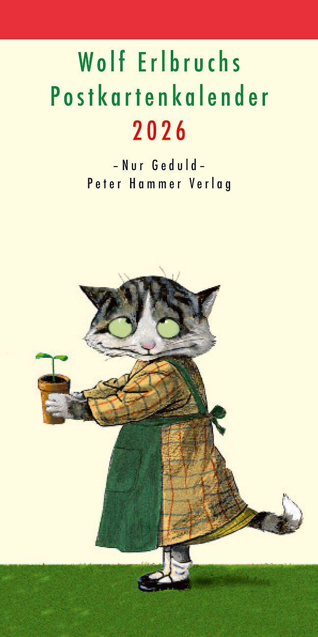 Wolf Erlbruchs hinreißende Motive zum Thema Nur Geduld erfahren im Postkartenkalender 2026 eine Neuauflage. Auf 13 Karten zum Heraustrennen zeigt Erlbruch wahre Musterbeispiele der lobenswerten Tugend und lässt dabei ihre voreilige Schwester, die Ungeduld, imm...