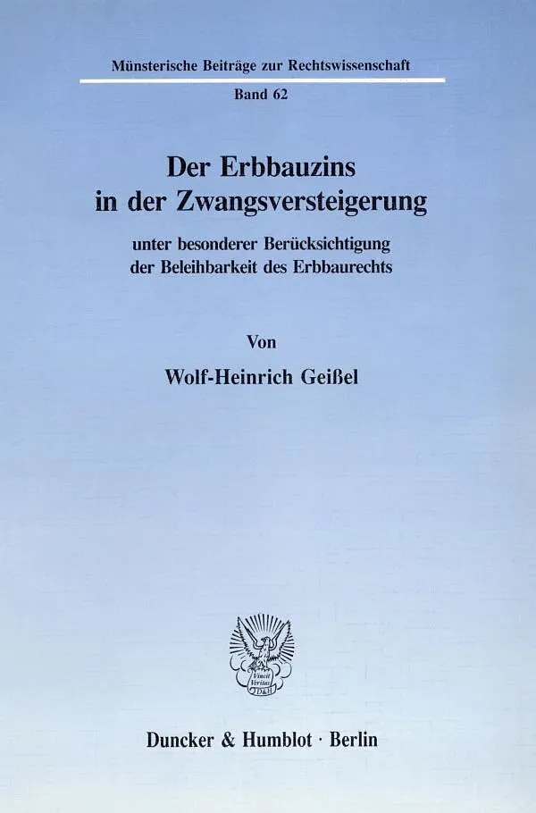 Der Erbbauzins in der Zwangsversteigerung unter besonderer Berücksichtigung der Beleihbarkeit des Erbbaurechts.