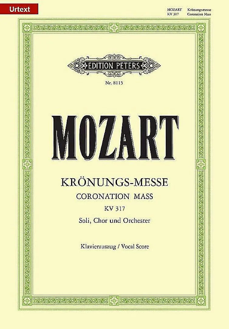 Urtext edition by Klaus Burmeister of Mozart's 'Coronation Mass' in C major K317. Vocal Score contains piano reduction of the orchetral accompaniment. Missa C-Dur KV 317 Krönungsmesse (Klavierauszug) Urtextausgabe von Klaus Burmeister von Moza...