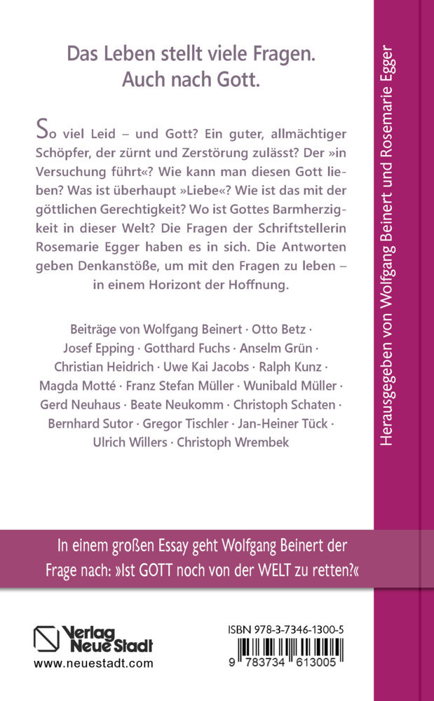 Abhaken lässt sie sich nie: die große alte Frage nach Gott und dem Leid. Wie von selbst stellt sie sich je neu. Gerade heute. Auch wenn sie nie definitiv beantwortet sein wird, ruft sie nach Antworten, mit denen sich leben, glauben, hoffen lässt. Rosemarie Egg...