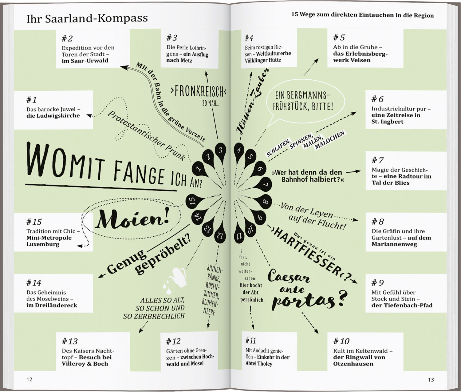 Im Saarland kennt zwar nicht jeder jeden, aber viele viele. »Isch kenn do änner, der «, kriegt man oft zu hören. Es bildet die Grundlage für die freundliche, unkomplizierte Solidarität der Saarländer untereinander und die Lust am Anpacken, Schwätzen, Feiern ....