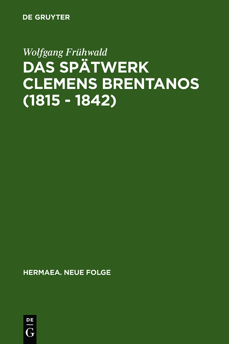 Frontmatter -- Inhalt -- VORWORT -- GRUNDLAGEN -- KAPITEL I: Die Brentano-Rezeption im 19. Jahrhundert -- KAPITEL II: Werkimpulse -- SPÄTWERK ANALYSEN -- KAPITEL III: Wiener und Berliner Lyrik 18131819 -- KAPITEL IV. Schriften der Katholischen Bewegung 1819183...