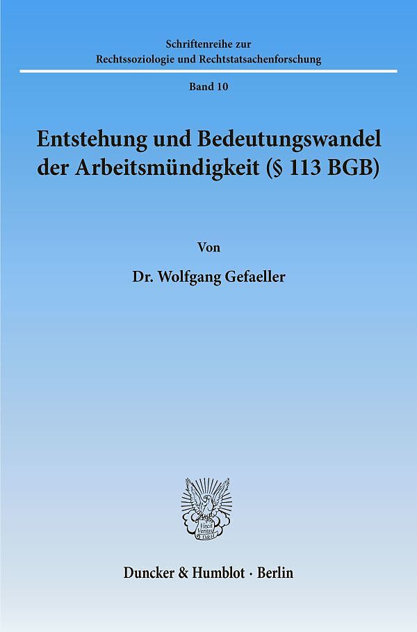 Entstehung und Bedeutungswandel der Arbeitsmündigkeit (§ 113 BGB).