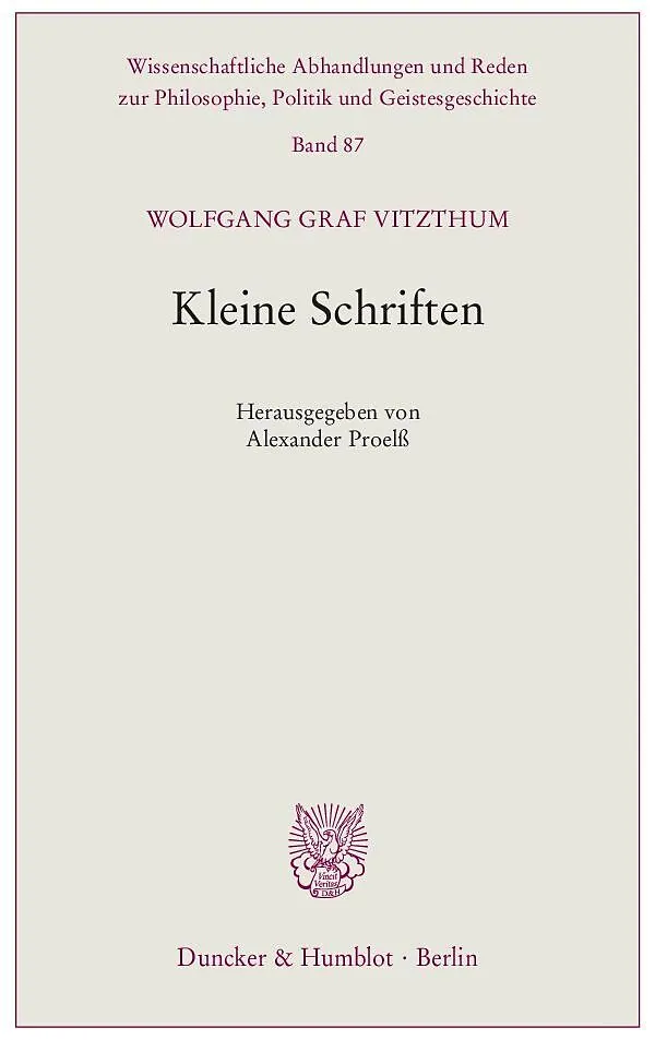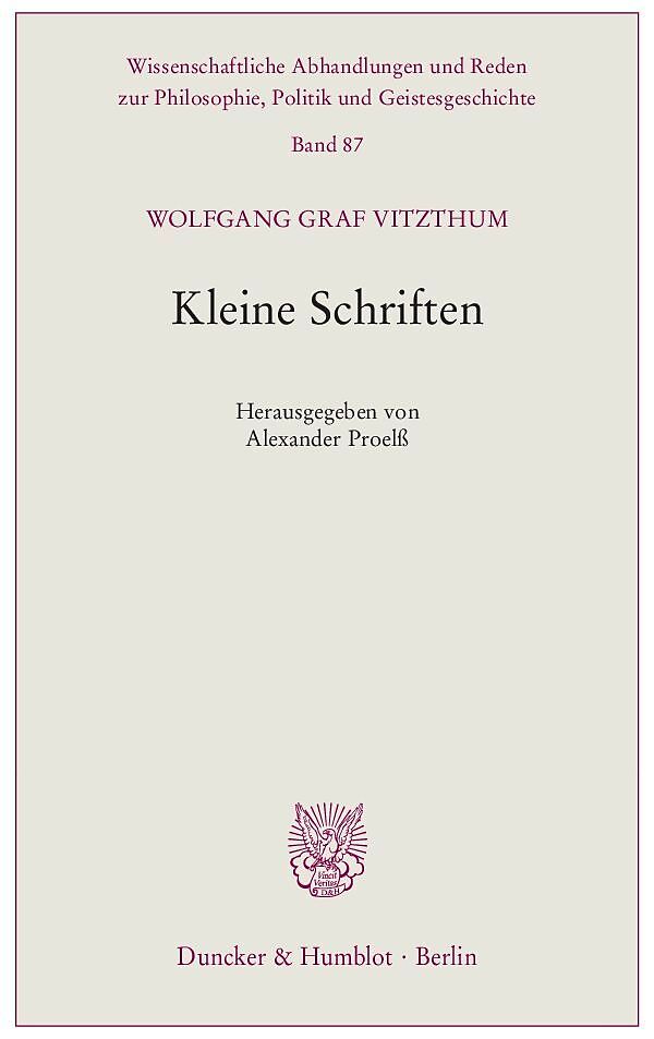 Die »Kleinen Schriften« erweisen Graf Vitzthum als einen Rechtslehrer in der Tradition der breiten und farbigen Staatswissenschaften. Schlaglichtartig werden verfassungsrechtliche und rechtshistorische Themen behandelt sowie die islamische, die russische und d...