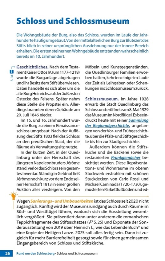 Der Burgberg - Stiftskirche St. Servatii - Der Stiftsschatz - Schloss und Schlossmuseum - Klopstockhaus - Lyonel-Feininger-Galerie - Finkenherd - Adressen und Öffnungszeiten - Tourist-Informationen