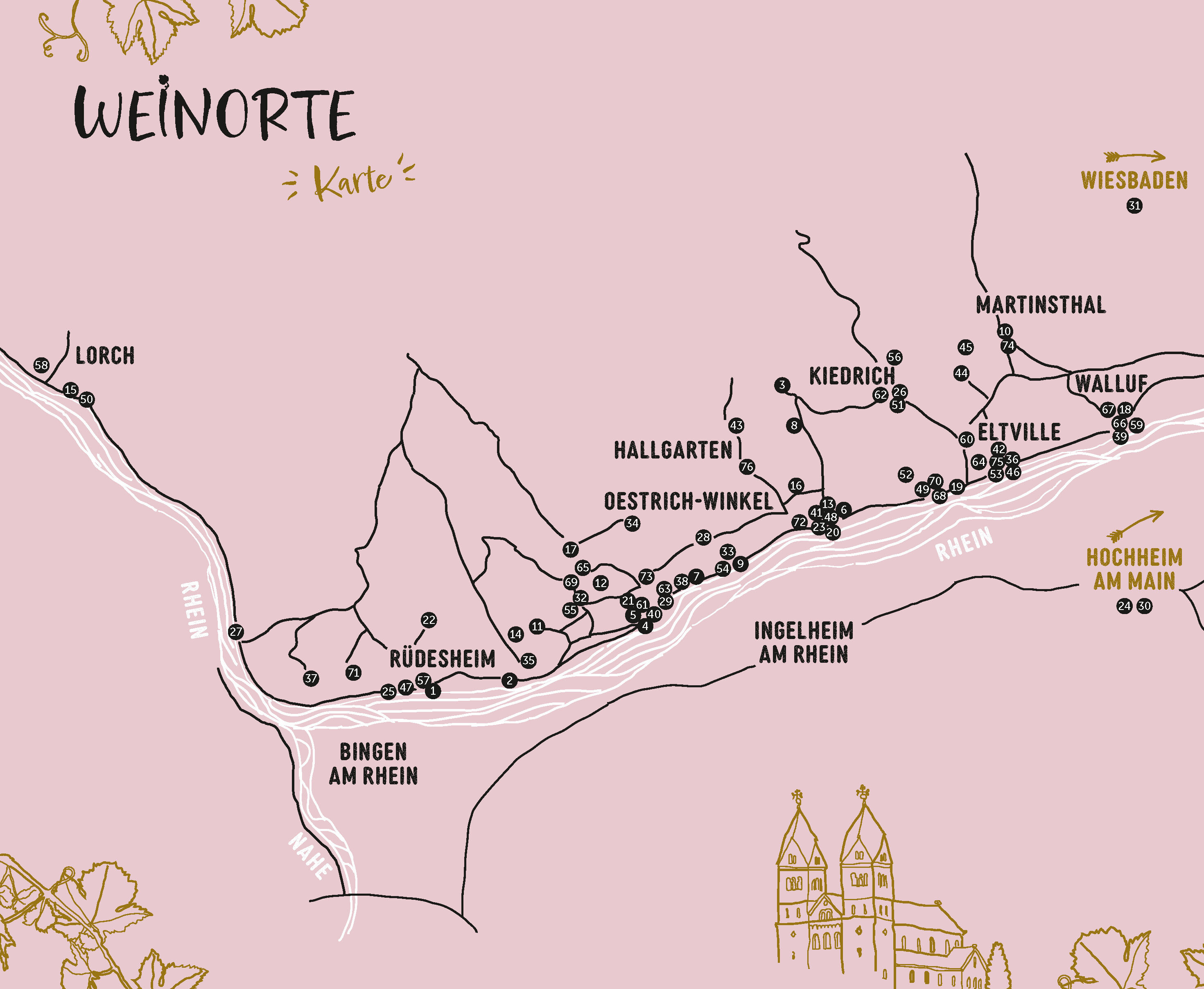 Im Rheingau lässt es sich gut leben: Seit Jahrhunderten wachsen Rebstöcke an den nach Süden ausgerichteten Hängen zum Rhein, die Menschen genießen den Wein und das gute Essen. Hier wurden die Spätlese und der Kabinett-Wein erfunden. Monumente der Weingeschicht...