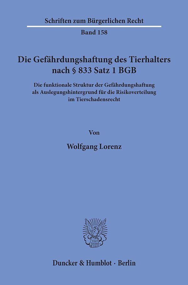 Die Gefährdungshaftung des Tierhalters nach § 833 Satz 1 BGB.
