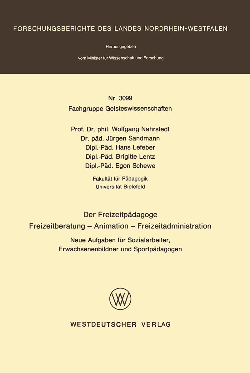 Inhalt Zusammenfassung.- 1. Gegenstand der Untersuchung.- 2. Ziel des Forschungsvorhabens.- 3. Untersuchungsmethode und Untersuchungsverlauf.- 4. Ergebnisse.- I Die Entstehung des Freizeitpädagogen Historischer und theoretischer Kontext der Untersuchung .- 1. ...