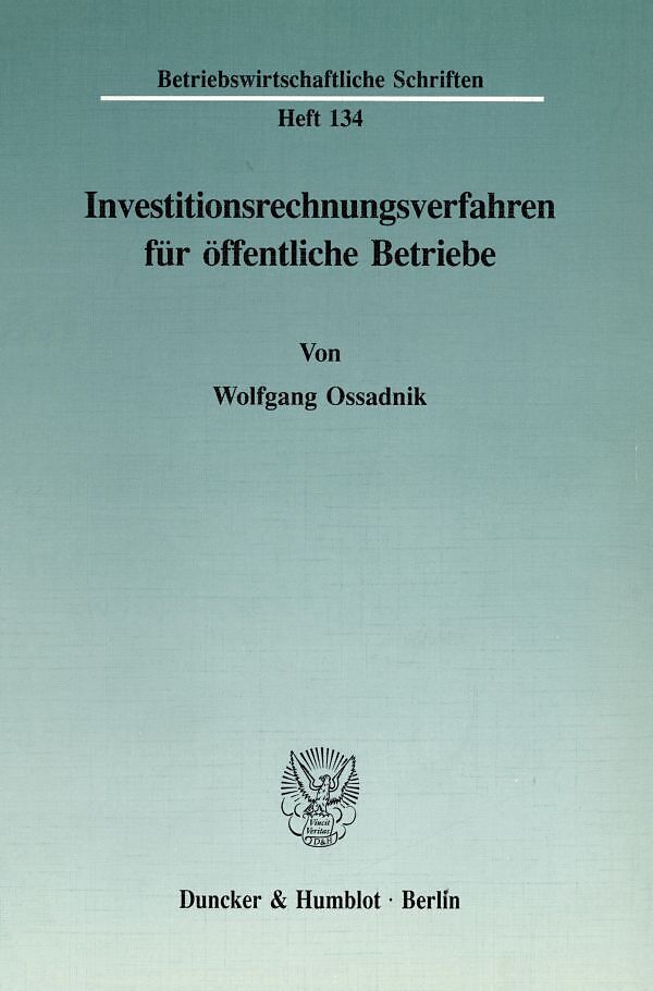 Investitionsrechnungsverfahren für öffentliche Betriebe.