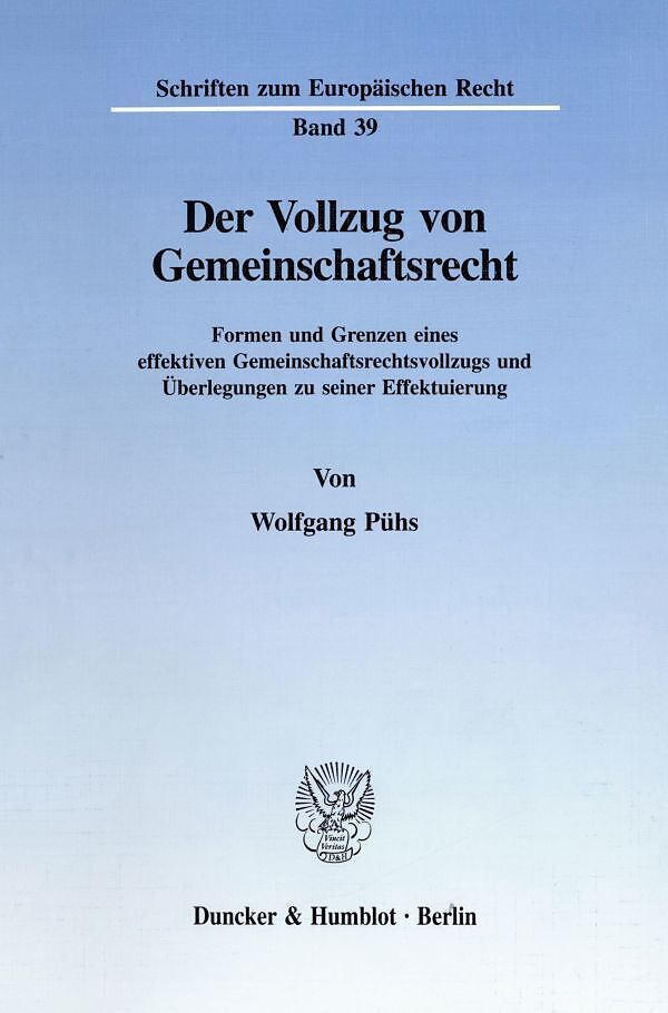Die steigende Zahl an Verstößen der Mitgliedstaaten gegen ihre gemeinschaftsrechtlichen Vollzugspflichten erfordert das Beschreiten neuer Wege der Effektuierung des mitgliedstaatlichen Vollzugs von Europäischem Gemeinschaftsrecht. Die mitgliedstaatlichen Vollz...
