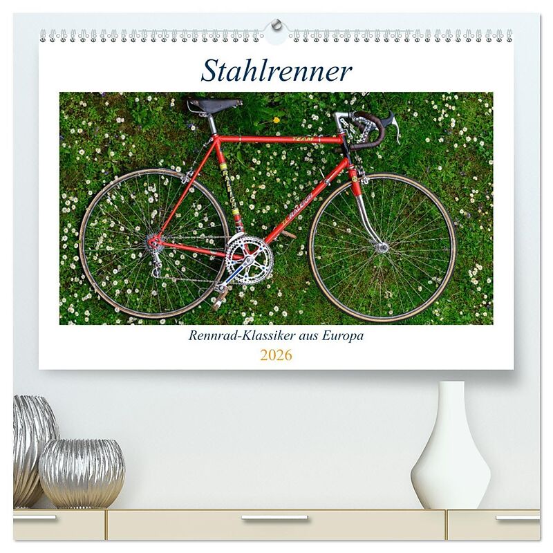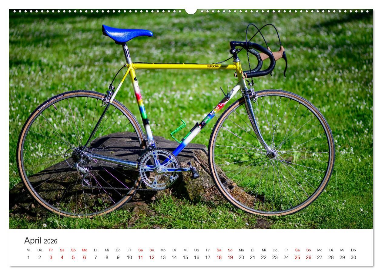 Klassische Rennräder mit Stahlrahmen sind wieder im Trend. Der Kalender zeigt eine Auswahl an klassischen europäischen Rennrädern mit Stahlrahmen aus den 50er, 60er, 70er und 80er Jahren. Fahrräder von Puch, Cinelli, Vetta, Gazelle, Colnago, Raleigh oder Einze...