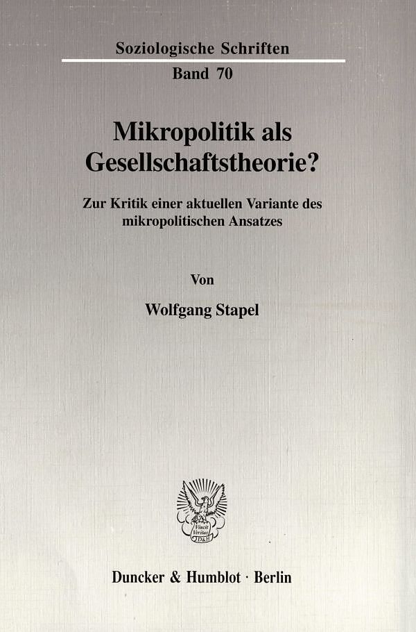 Die in der Arbeit von Wolfgang Stapel geführte Auseinandersetzung über die Mächtigkeit und Reichweite des sog. mikropolitischen Ansatzes reflektiert eine alte und zugleich hochaktuelle Diskussion. Im engeren Kontext der Betriebswirtschaftslehre wäre sie unter ...
