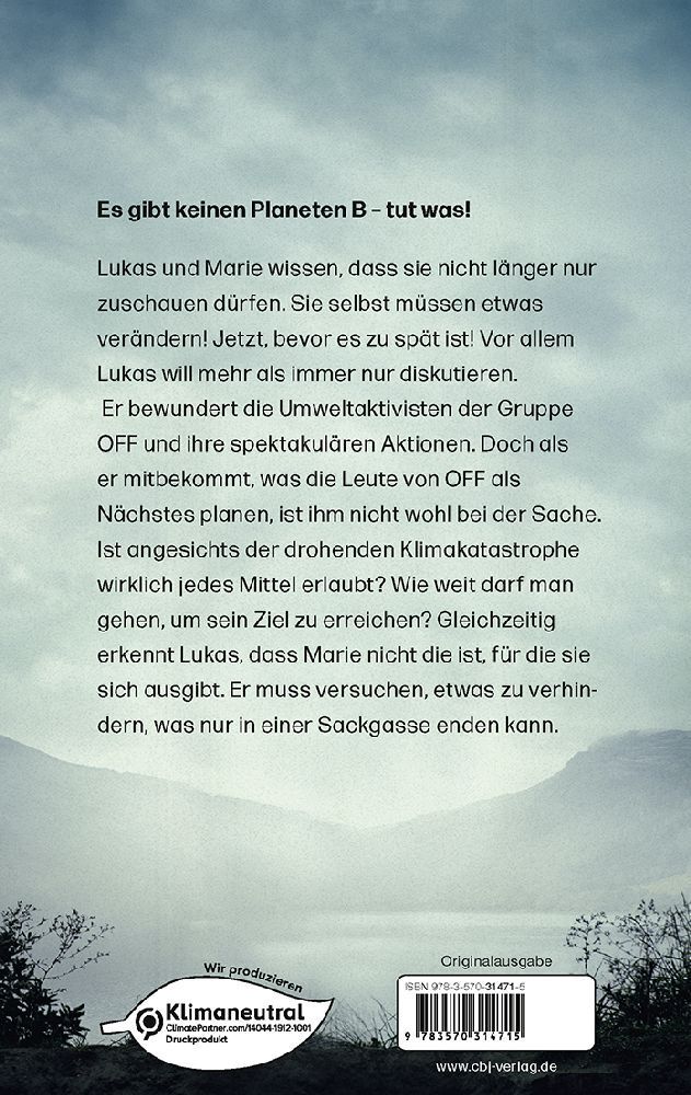 Kampf um unsere Zukunft Es gibt keinen Planeten B - tut was! Lukas und Marie wissen, dass sie nicht länger nur zusehen dürfen. Sie selbst müssen etwas verändern. Und zwar jetzt, bevor es zu spät ist. Vor allem Lukas will mehr als immer nur diskutieren. Er bewu...