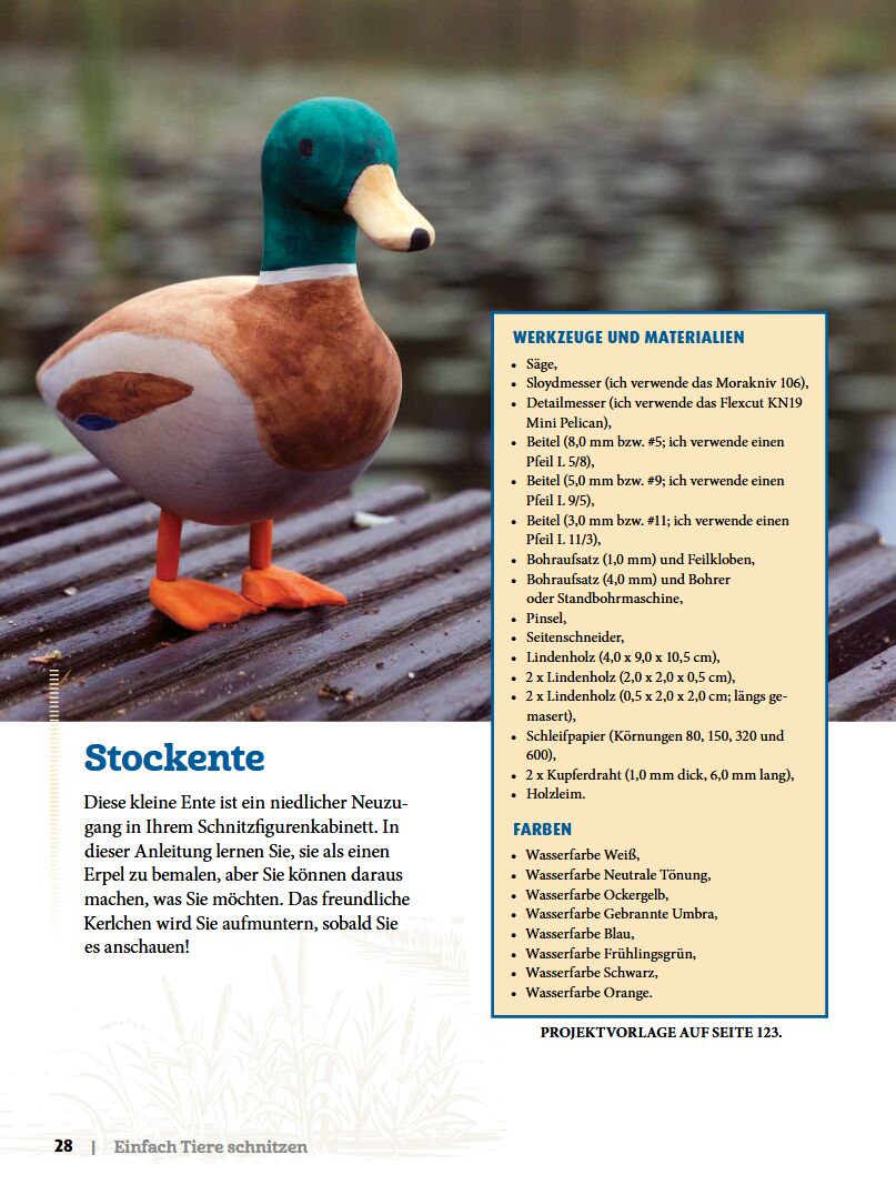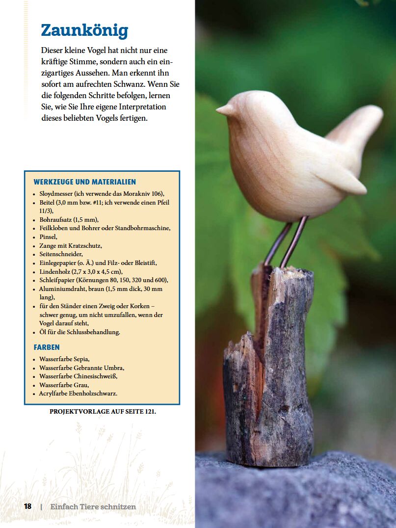 Ein wertvoller Begleiter für Einsteiger und Fortgeschrittene: Der Autor führt Schritt für Schritt an zahlreiche Tierschnitzereien wie Zaunkönig, Henne, Ente, Schwan, Stier, Rentier, Katze, Bär, Wolf und Kaninchen heran, die ohne aufwändige Detailarbeit auskomm...