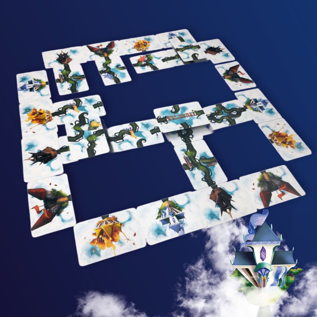 Wolkenreich - Wer sichert sich die Herrschaft über die Luftschlösser? Wer verbindet zuerst seine Luftschlösser und verbaut anderen den Weg? Hoch in den Wolken rivalisieren vier Adelsfamilien in ihren Luftschlössern um die Thronfolge. Mit magischen Bohnenranken...