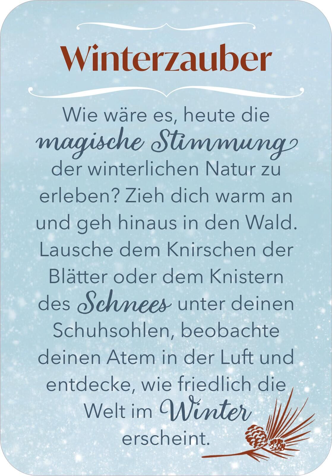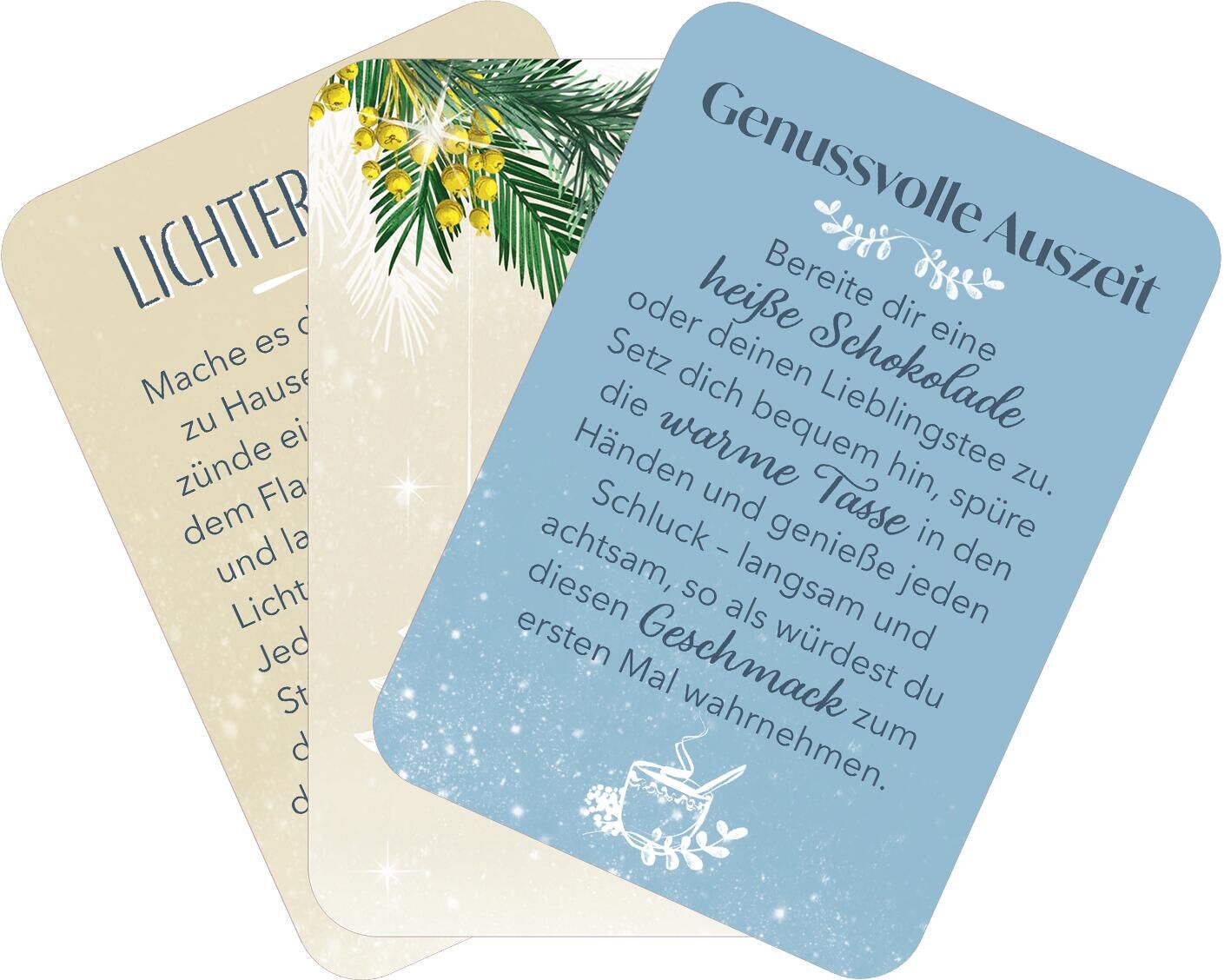 Wundervoller Advent 24 Wohlfühlmomente für dich Schenke dir 24 kleine Wohlfühlmomente, die dich Tag für Tag durch den Advent begleiten. Auf jeder der stimmungsvollen Karten findest du inspirierende Impulse, die dich zur Ruhe kommen lassen und die besondere Ma...