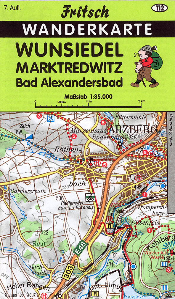 Die Karte ist eine Ausschnittskarte vom Fichtelgebirge und beinhaltet die Orte Röslau, Thiersheim, Wunsiedel (mit Luisenburg), Bad Alexandersbad, Tröstau, Marktredwitz, Waldershof mit der Kösseine, Hohe Matze, Gr.Teichlberg.