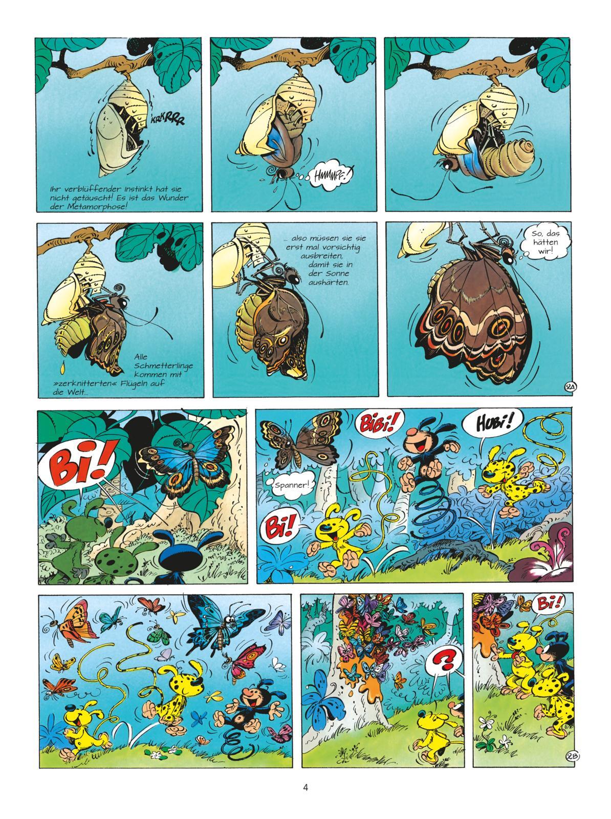 Ein Forscher-Team kommt in den palumbianischen Dschungel , um dort einen seltenen Schmetterling zu suchen, der bevorzugt in den Wipfeln der Bäume lebt und seine Eier gerne auf die Nester von Marsupilamis ablegt. So richten sie ihr Basis-Camp schwebend über den Kronen der Bäume ein. Als sich merkwürdige Zwischenfälle häufen, kommt ihnen ein schwerer Verdacht: Ein Saboteur hat sich eingeschlichen! Ab sofort findet eine Doppeljagd auf den Schurken und den Schmetterling statt!