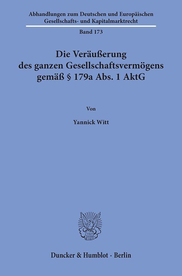 Trotz der langen Historie des § 179a AktG ist es der Rechtsprechung und Literatur nur sehr bedingt gelungen, das Tatbestandsmerkmal der Veräußerung des ganzen Gesellschaftsvermögens zu bestimmen. Die Arbeit weist nach, dass die Norm allein die Dispositionsfrei...