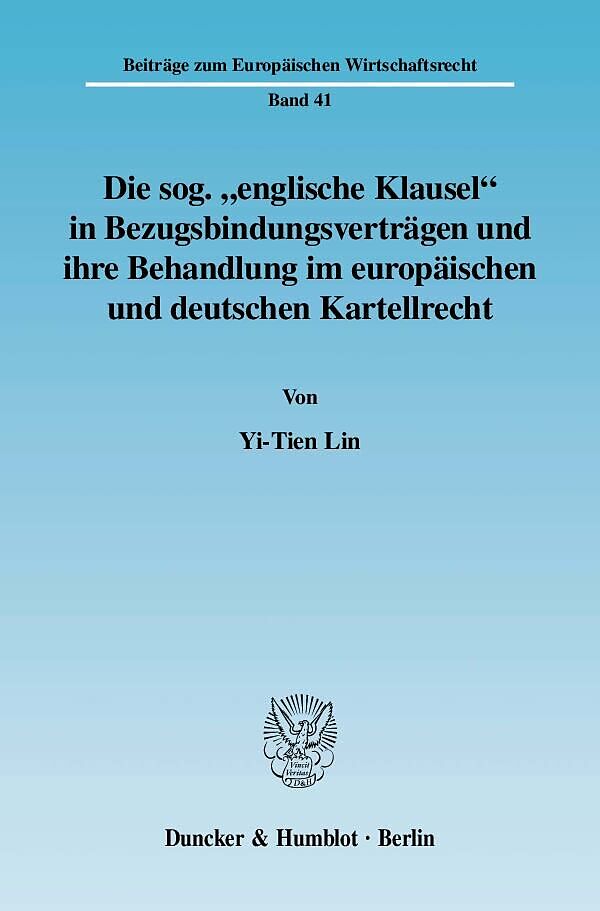 Nach der Liberalisierung der deutschen Energiemärkte ist die kartellrechtliche Behandlung der langfristigen Liefer- und Bezugsverträge von Energien wieder der Schwerpunkt der Kartellrechtspraxis geworden. Eine häufig verwendete Bestimmung ist die sog. "englisc...