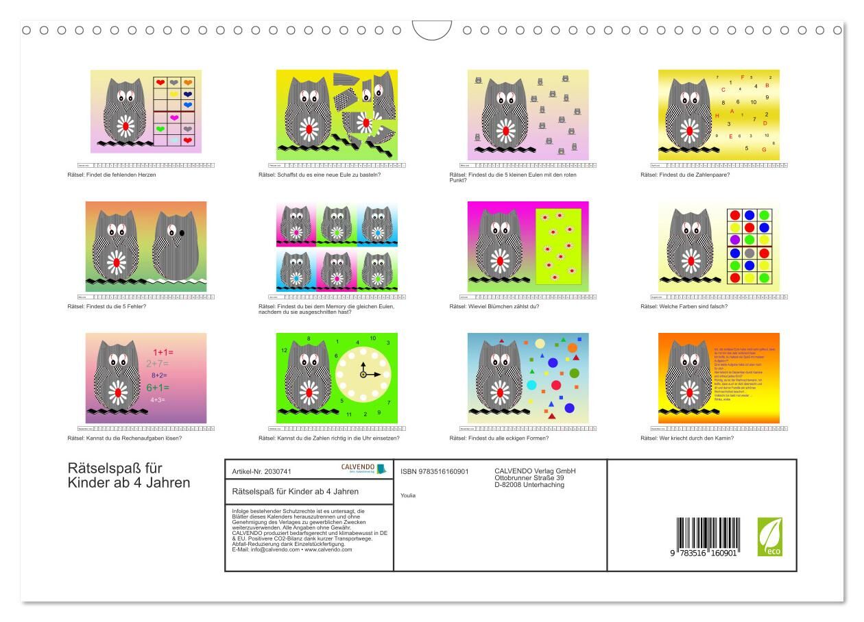 Rätselspaß für Kinder ab 4 Jahren (Wandkalender 2026 DIN A3 quer), CALVENDO Monatskalender