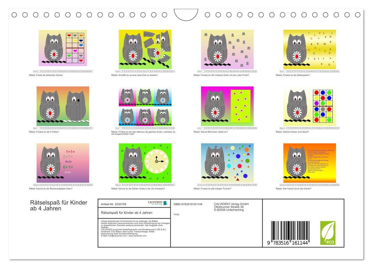 Wer rätselt nicht gern? Die kleine Eule begleitet dich durch das Jahr mit lustigen Aufgaben. Könnt ihr sie alle lösen?