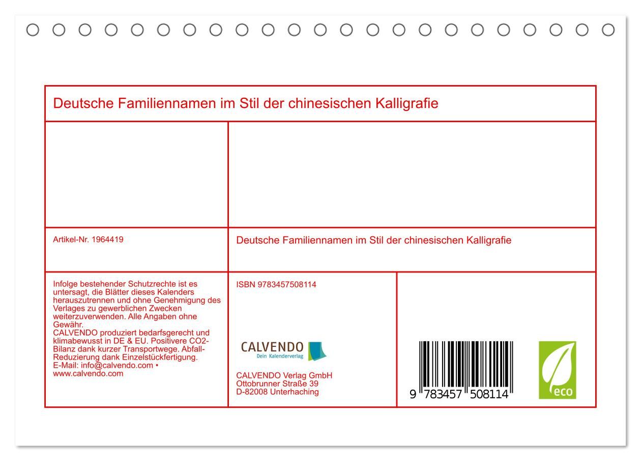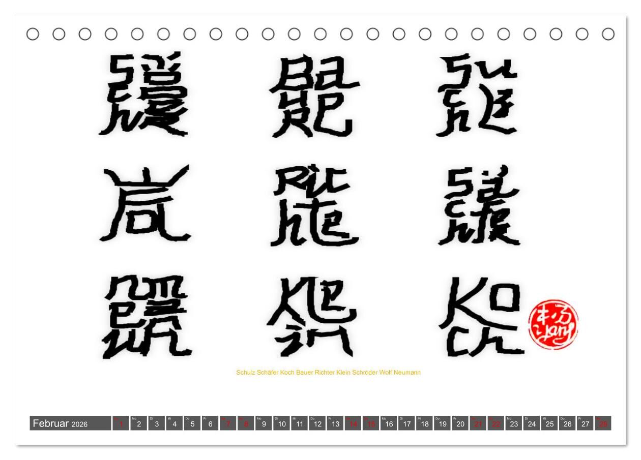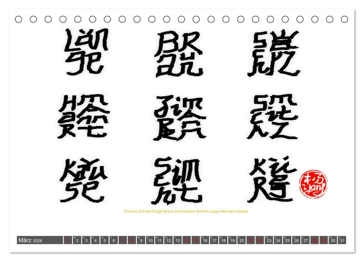 Deutsche Familiennamen im Stil der chinesischen Kalligrafie (Tischkalender 2026 DIN A5 quer), CALVENDO Monatskalender