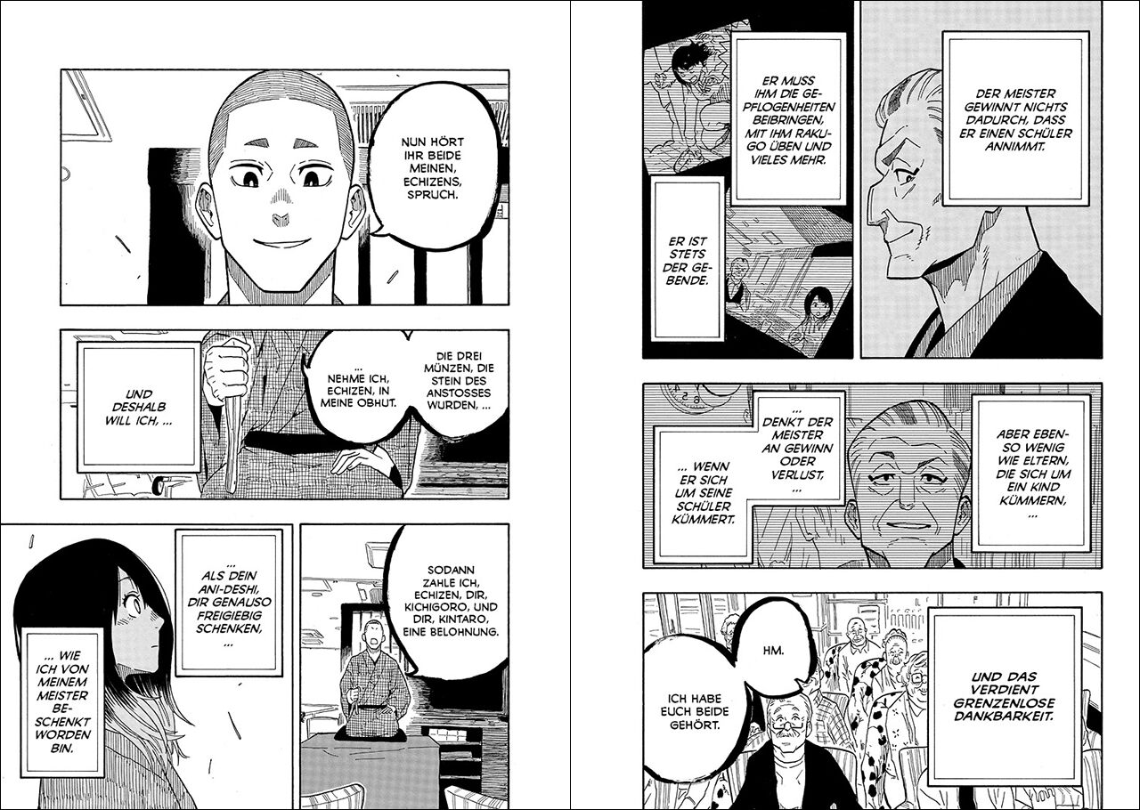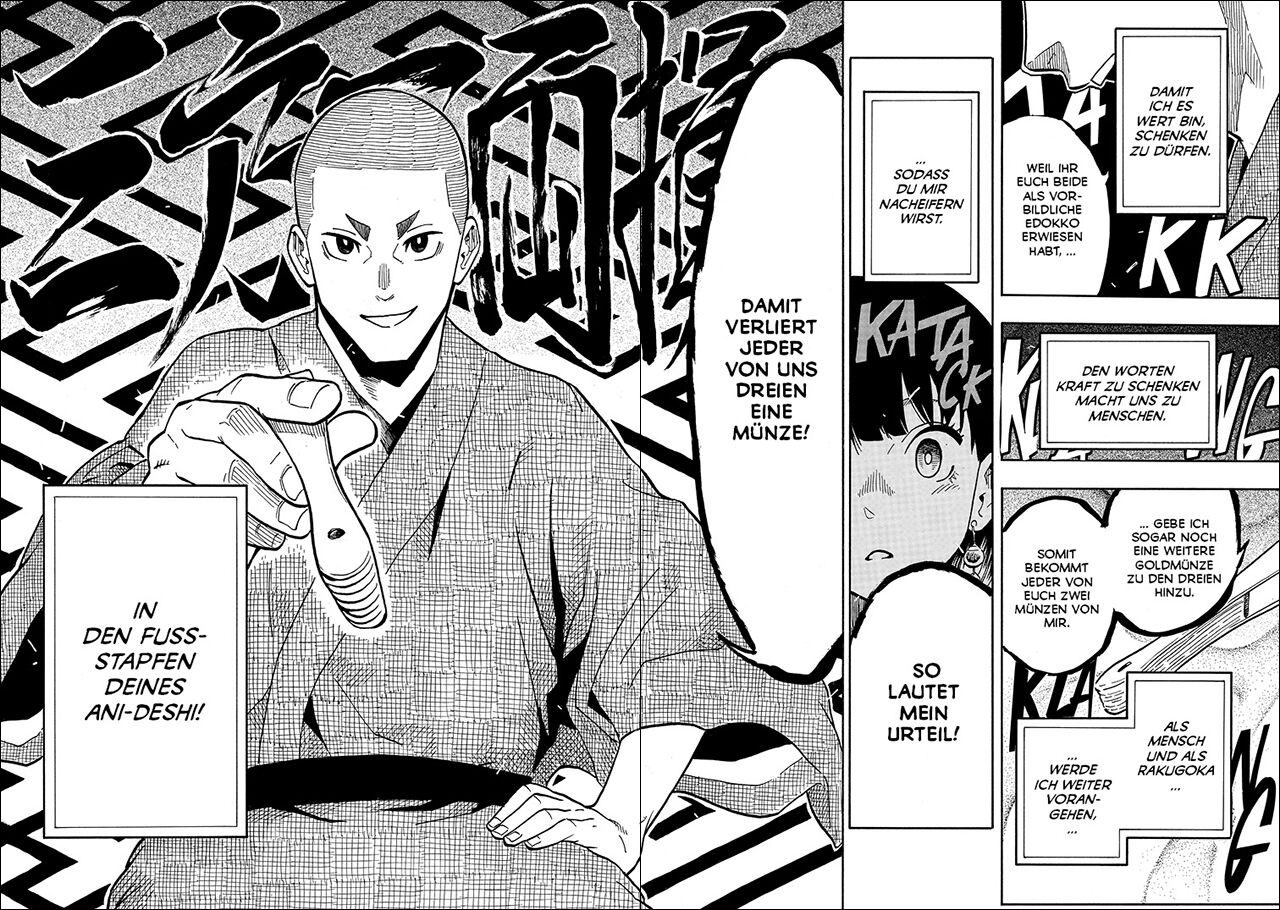 Geschichten erzählen ist doch (k)eine Kunst Akane soll die Eröffnung (Zenza) bei einem Auftritt von Kyoji übernehmen. Er will sehen, ob sie den Leuten mit ihrem Rakugo Freude bereiten kann. Doch mit welcher Lösung wird Akane ihn überzeugen können? Und die näc...