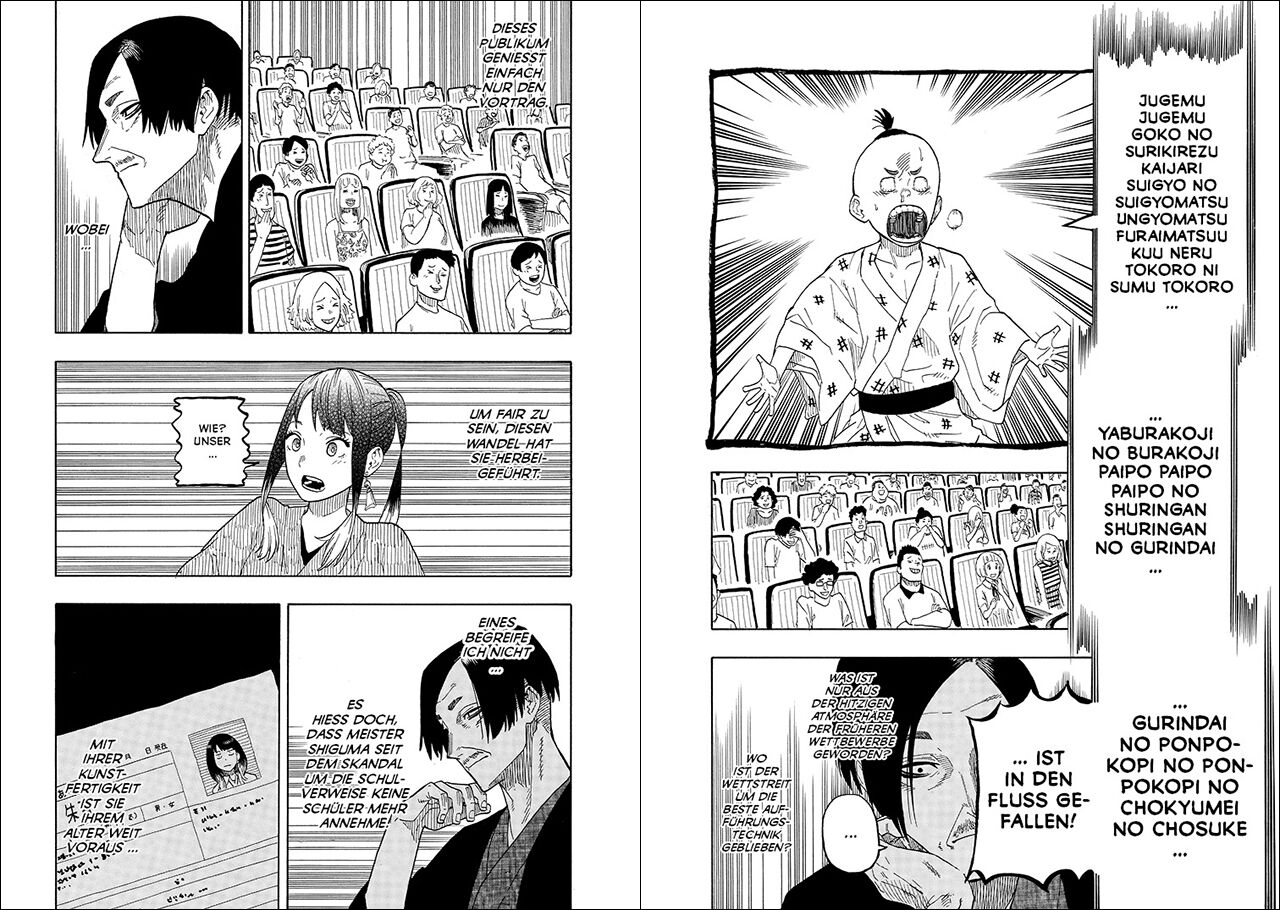Geschichten erzählen ist doch (k)eine Kunst Das Publikum hat Akane schon mal auf ihrer Seite. Doch während im Saal die Emotionen hochkochen, schleudert Rakugo-Meister Issho Arakawa ihr mit versteinerter Miene sein Urteil entgegen. Weil erst niemand begreift, w...