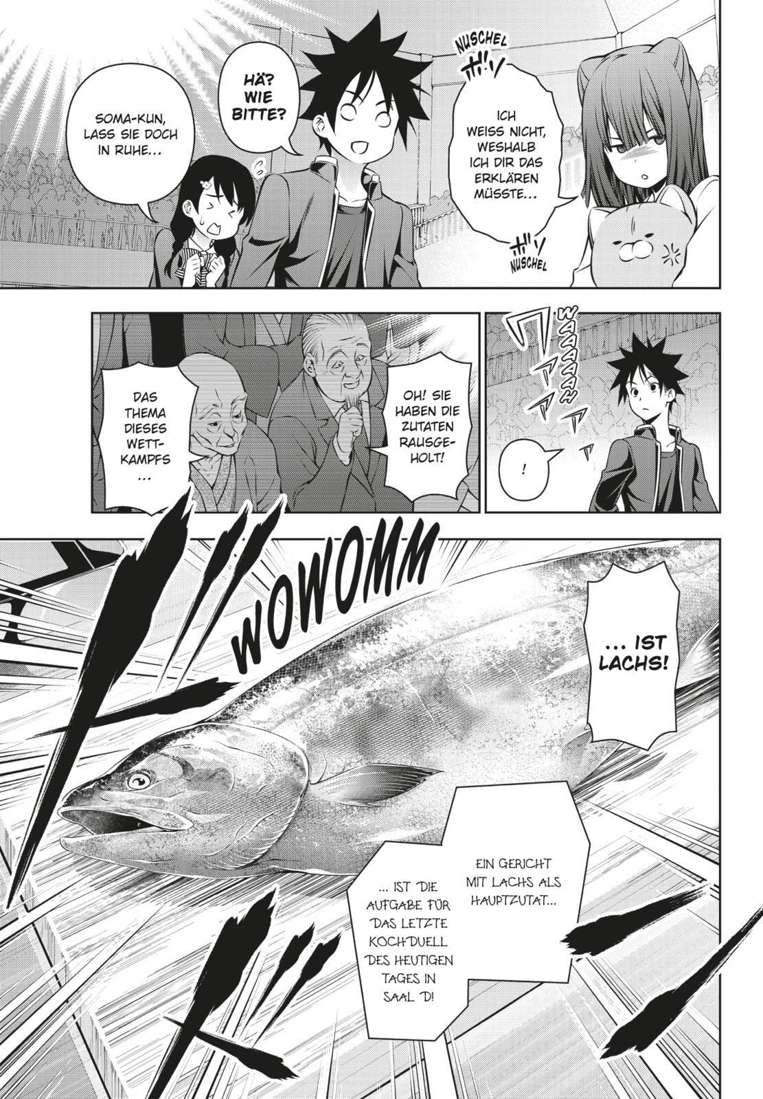 Der Leckerbissen für alle Sinne! Eine Extraportion Humor garniert mit pikanter Action! Die Kochplatten sind angeheizt für das Kräftemessen zwischen Polarsternkoch Kurokiba und Kusunoki von Central! Die Gegner brennen vor Stolz auf die Ehre des Sieges und bewe...