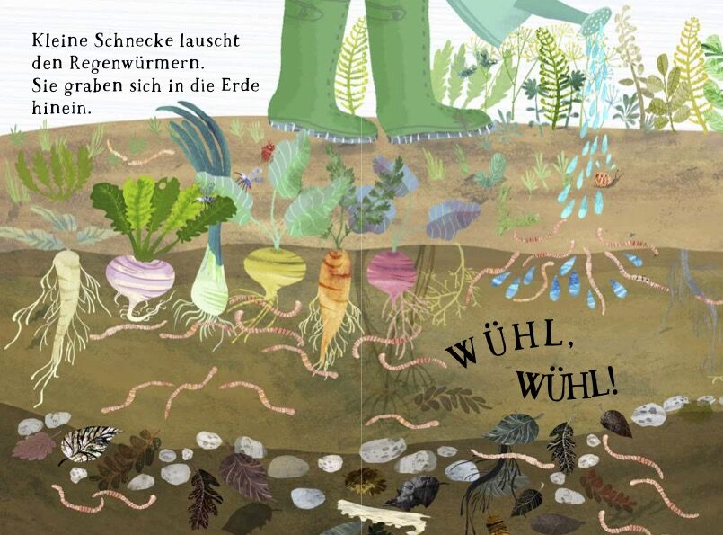 Dieses schön illustrierte Pappbilderbuch nimmt den/die kleine/n Leser/in mit auf eine Reise durch den Gartenwelt. Wir folgen der klebrigen Spur der Schnecke und beobachten Marienkäfer, Bienen, Ameisen und lauschen den Regenwürmern. • Zum gemeinsamen Betra...