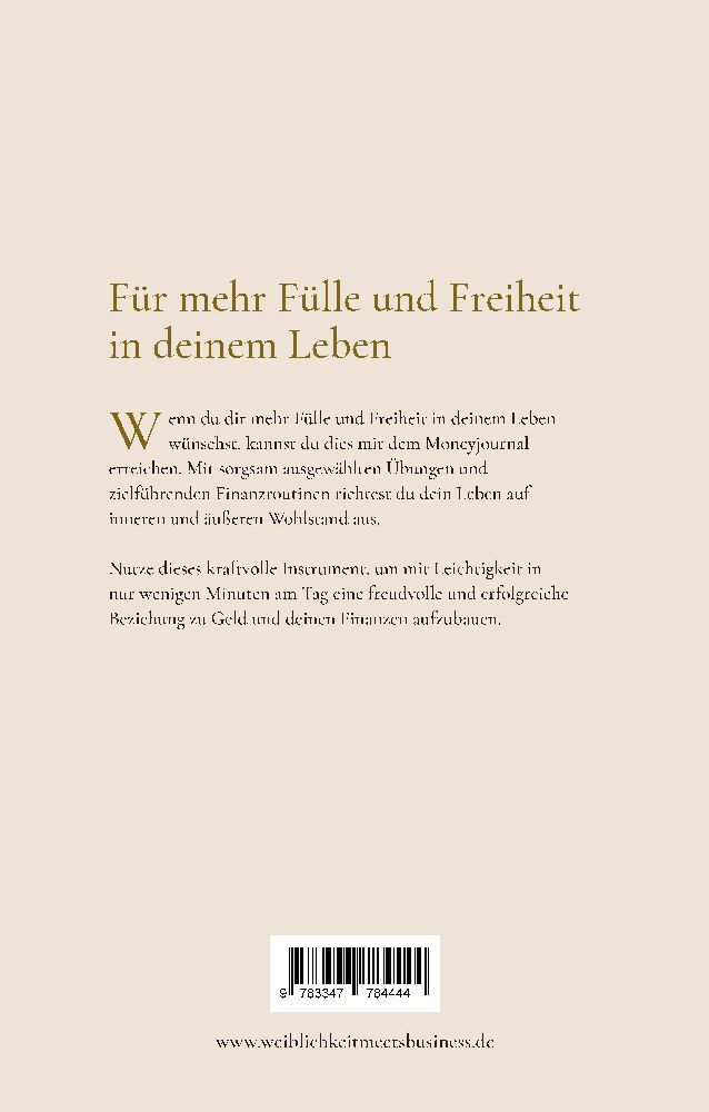 Für mehr Fülle und Freiheit in deinem Leben Wenn du dir mehr Fülle und Freiheit in deinem Leben wünschst, kannst du dies mit dem Moneyjournal erreichen. Mit sorgsam ausgewählten Übungen und zielführenden Finanzroutinen richtest du dein Leben auf inneren und äu...