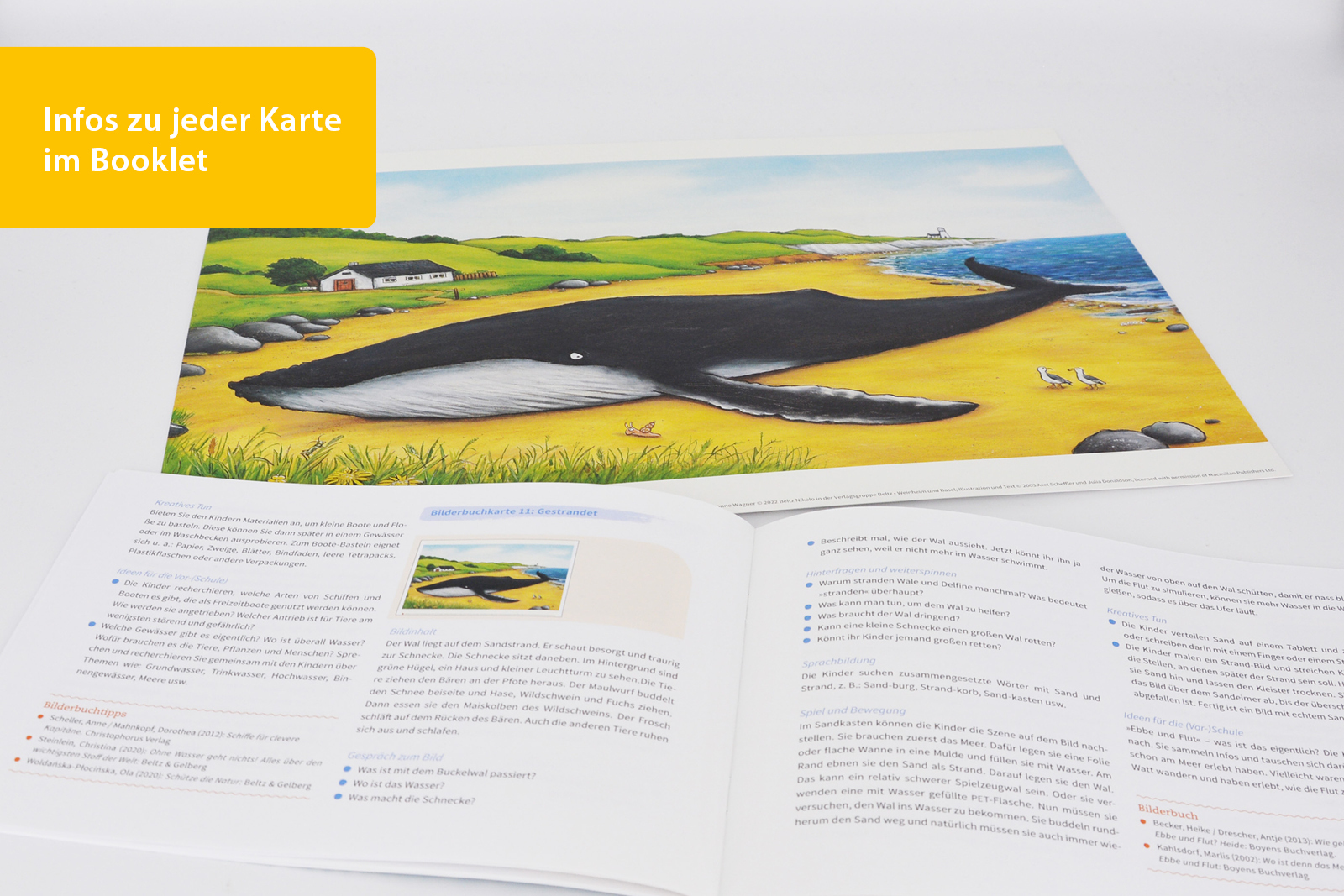 Die Bilderbuchkarten für das Kamishibai zum Bilderbuch »Die Schnecke und der Buckelwal« zeigen die abenteuerliche Reise einer Schnecke auf dem Rücken eines riesigen Blauwals. Denn diese Schnecke ist besonders mutig, neugierig und hat großes Fernweh. Sie möchte...