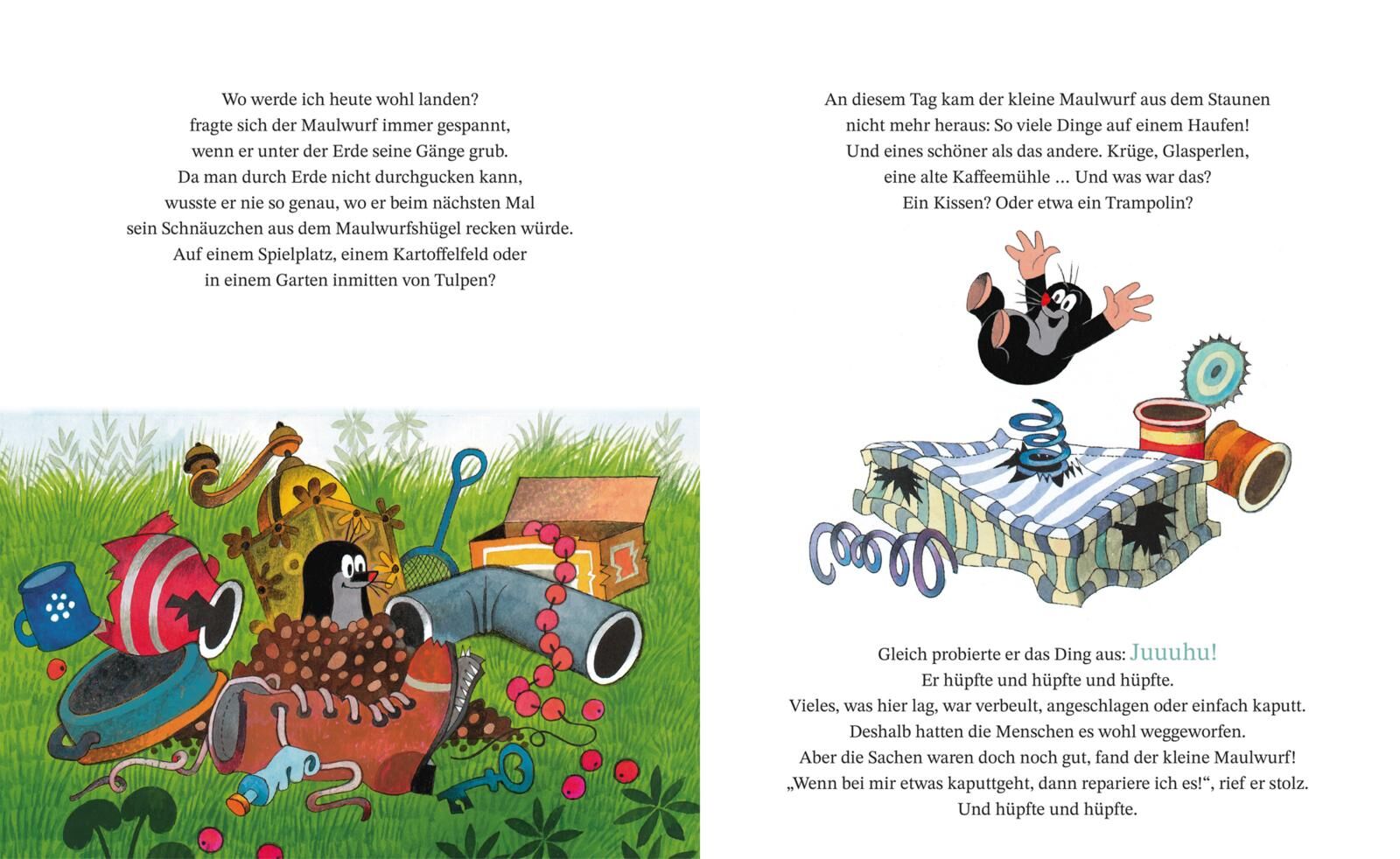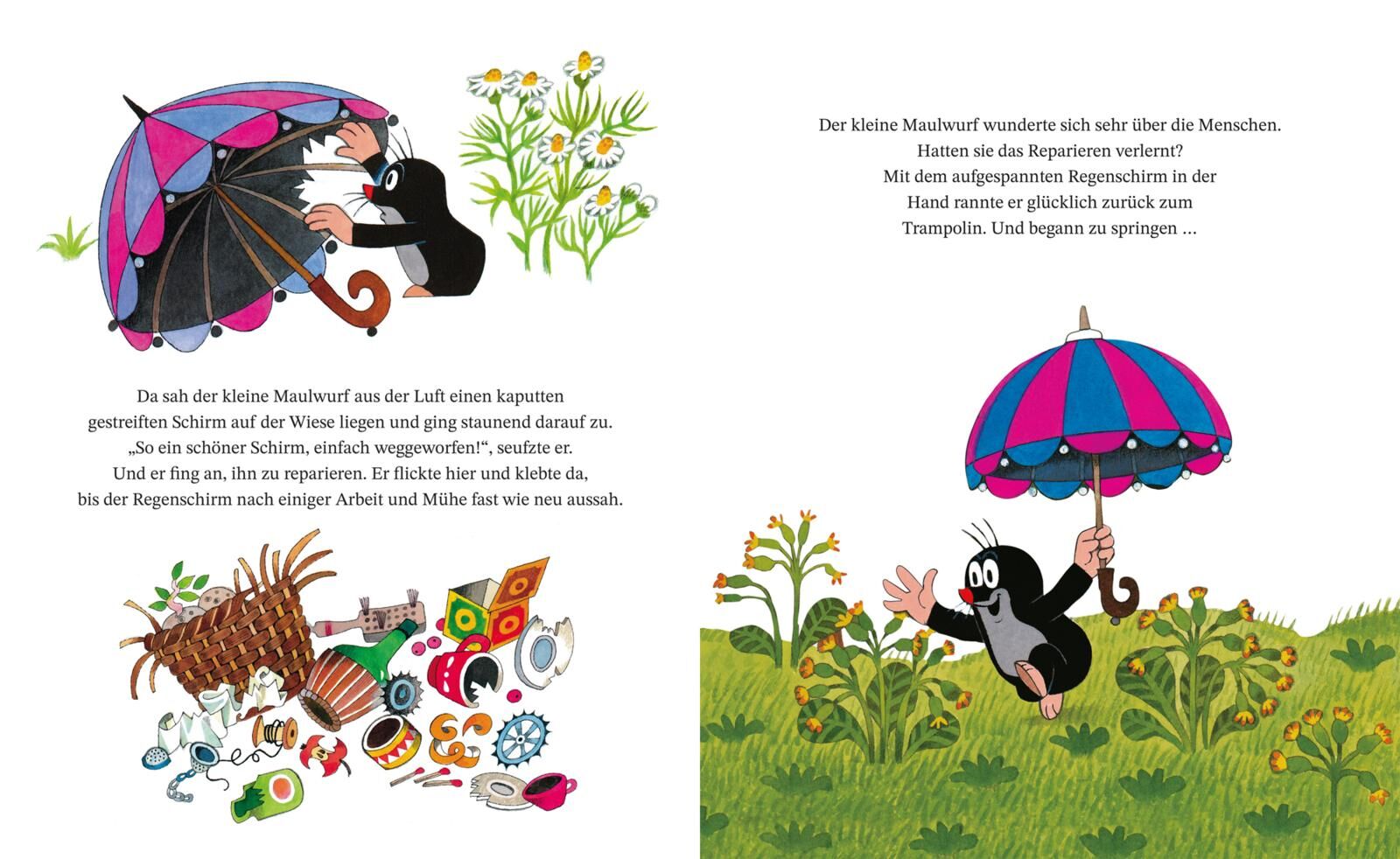 Einen Regenschirm braucht man nur bei Regen? Stimmt ja gar nicht! Als der kleine Maulwurf einen kaputten Regenschirm findet und ihn kurzerhand repariert, merkt er schnell, dass man damit auch herrlich durch die Lüfte segeln, den Fluss entlangschippern und sog...