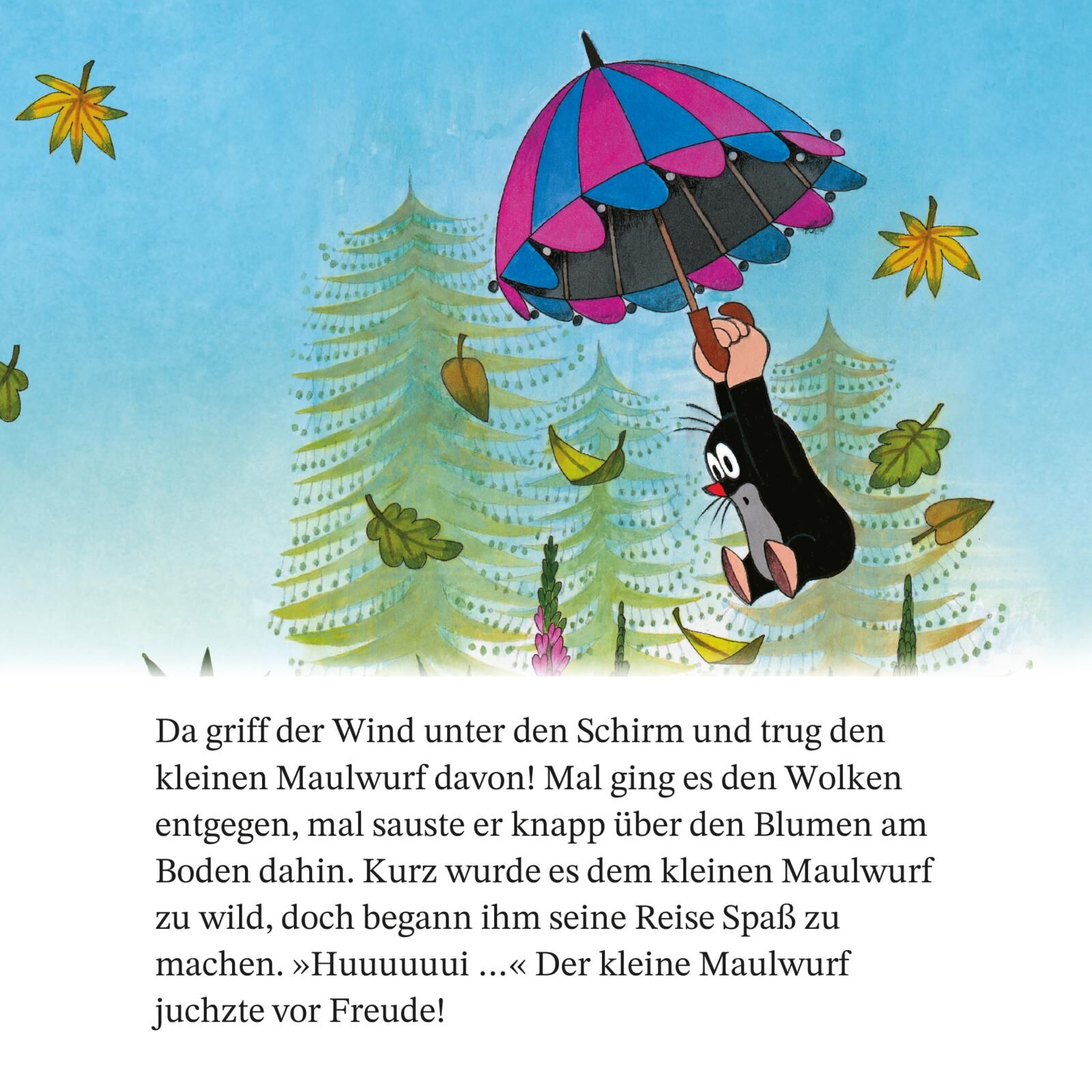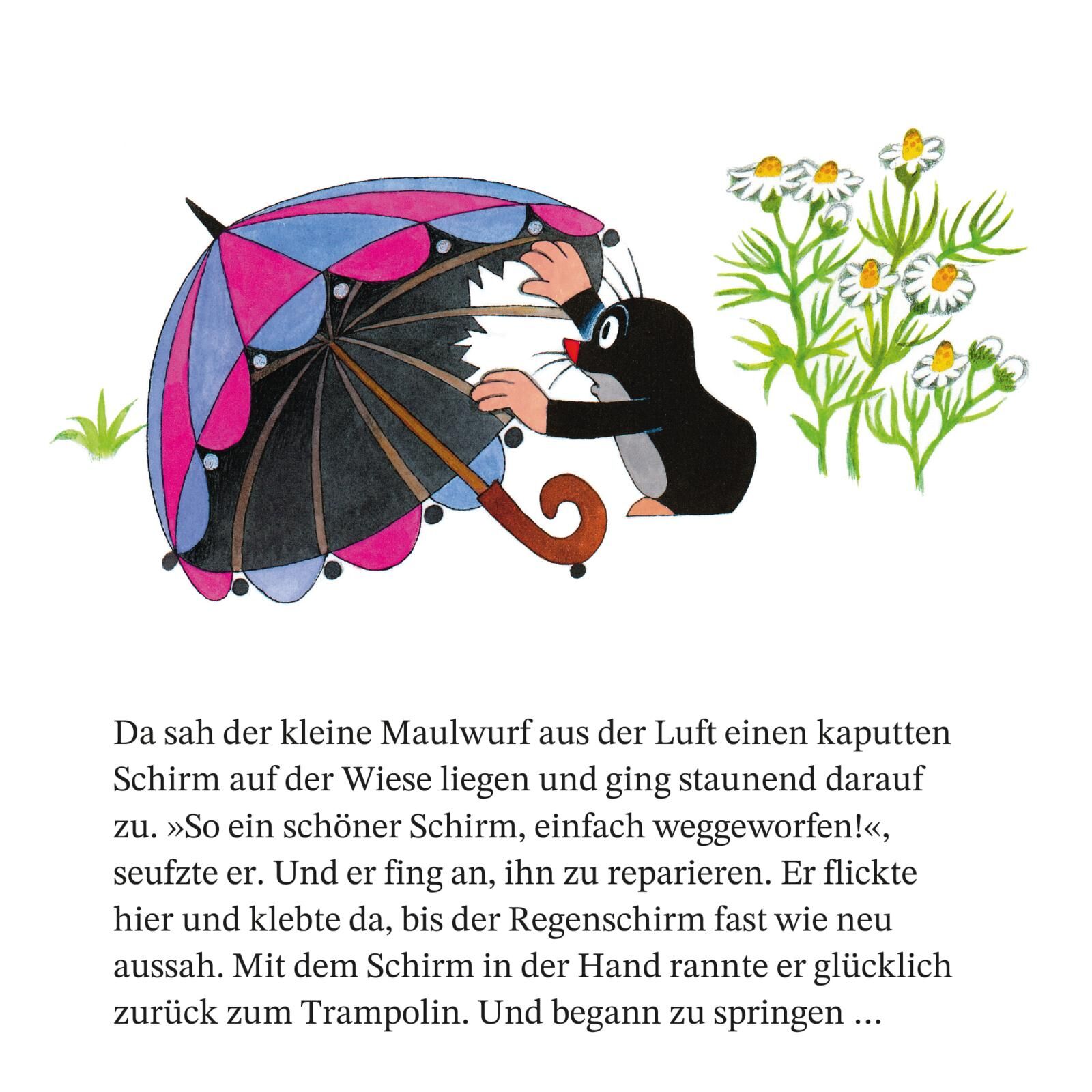 Einen Regenschirm braucht man nur bei Regen? Stimmt ja gar nicht! Als der kleine Maulwurf einen kaputten Regenschirm findet und ihn kurzerhand repariert, merkt er schnell, dass man damit auch herrlich fliegen, den Fluss entlangschaukeln und sogar den wilden H...