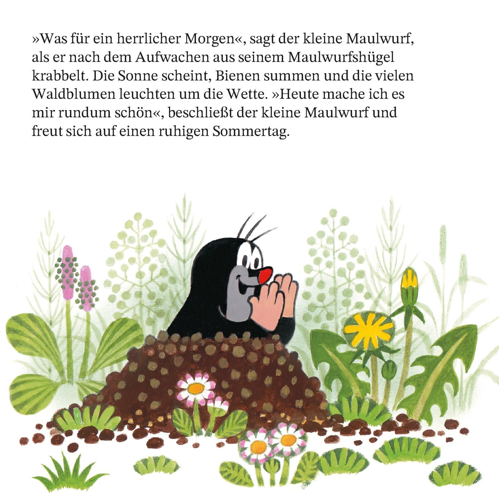 Heute mache ich es mir rundum schön, beschließt der kleine Maulwurf. Nach einem leckeren Frühstück legt er mit seinen Freunden einen Garten an. Jetzt fehlt nur noch ein Picknick mit Erdbeeren im eigenen Garten! Doch plötzlich beginnt es zu regnen und zu regne...