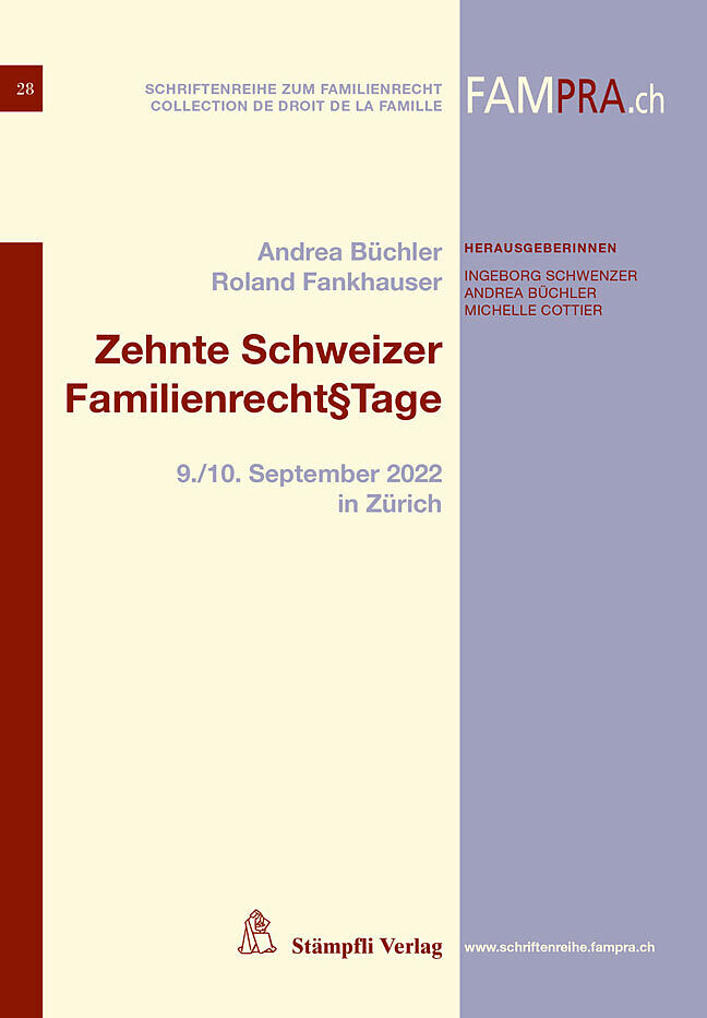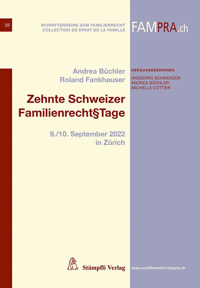 Am 9./10. September 2022 fanden in Zürich die Zehnten Schweizer Familienrecht§Tage statt. In der vorliegenden Publikation sind zwei Plenumsreferate sowie die Berichte und Ergebnisse aus acht Arbeitskreisen abgedruckt. Thema der Referate waren die Anliegen des ...