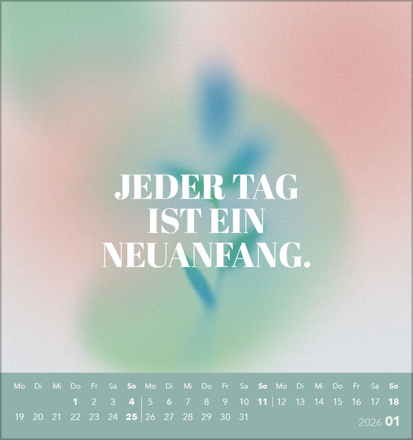 Produktmerkmale • Format: 17 x 16 cm; Postkartenkalender mit 12 einzigartigen Bildern • Origineller Fotokalender zum Aufstellen • Kalendarium auf Deutsch mit hervorgehobenen Sonn- und Feiertagen für D,A und CH • Gedruckt auf umweltfreundli...