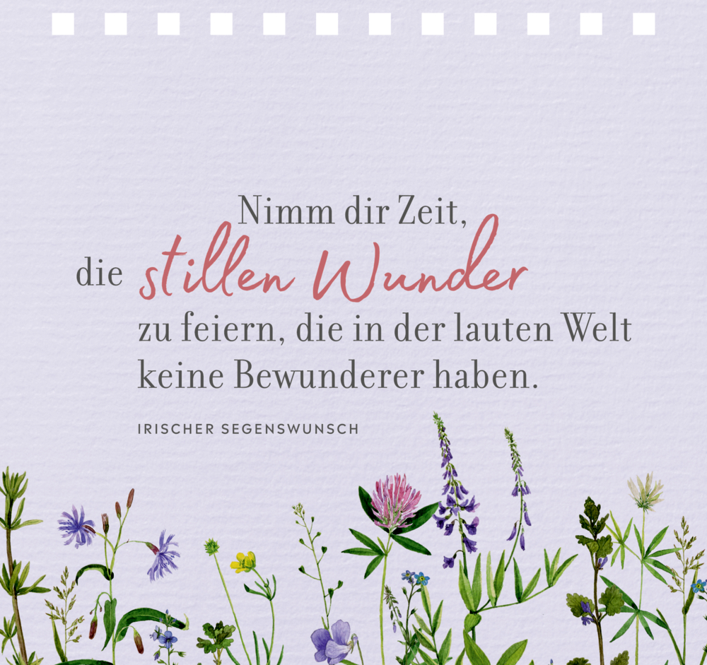 Ein echter Hingucker: Mit glänzender Folie und geprägtem Titel sagt dieses Spiralbuch einem lieben Menschen: Nimm dir Zeit für dich! Die stimmungsvollen Naturbilder und ausgewählten Zitate erinnern jeden Tag aufs Neue an die Bedeutung von Erholung und kleinen ...