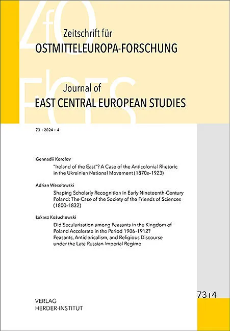Die ZfO präsentiert in vierteljährlicher Folge die neuesten Ergebnisse zur Geschichte und Kultur der in den Grenzen Polens, Tschechiens, der Slowakei, Ungarns, Litauens, Lettlands und Estlands sowie in Teilgebieten Belarus', Russlands und der Ukraine gelegen...