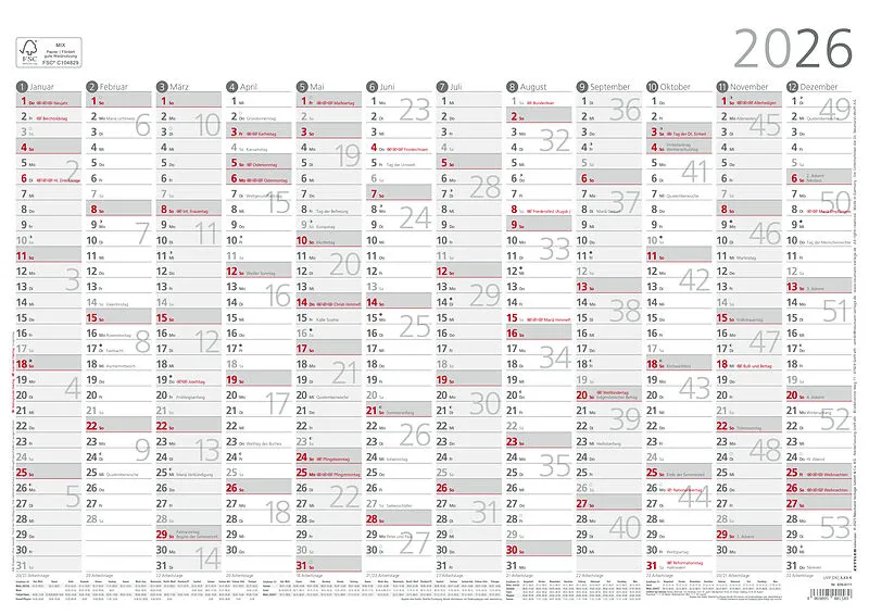 Die Zettler Jahresübersicht A3 12 Mon 1 Stk. plano 2026 ist der praktische Jahresplaner für Büro und Homeoffice. Mit klarer Gliederung, gut lesbaren Ziffern und zusätzlichem Platz für Notizen behalten Sie das ganze Jahr im Blick. Kalendertyp: Plakatkalender T...