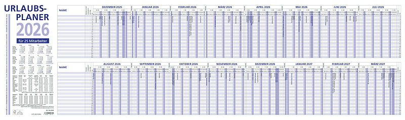 Der Zettler Urlaubsplaner 16 Mon 2026 ist der ideale Wandkalender für die langfristige Urlaubs- und Einsatzplanung im Büro oder Betrieb. Mit 16 Monaten auf einer Seite und Platz für 25 Mitarbeiter behalten Sie jederzeit den Überblick. Kalendertyp: Ur...