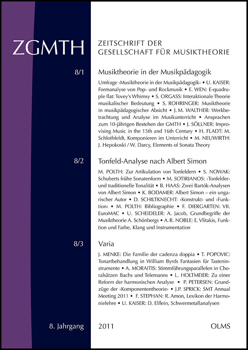 Das Fach Musiktheorie befindet sich im Umbruch. Es erschließt sich neue Felder und bekannte Felder auf neue Art. Die Zeitschrift der Gesellschaft für Musiktheorie bietet hierfür eine Plattform. Seit 2003 im Internet, erscheint sie künftig einmal jährlich auch ...
