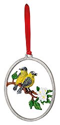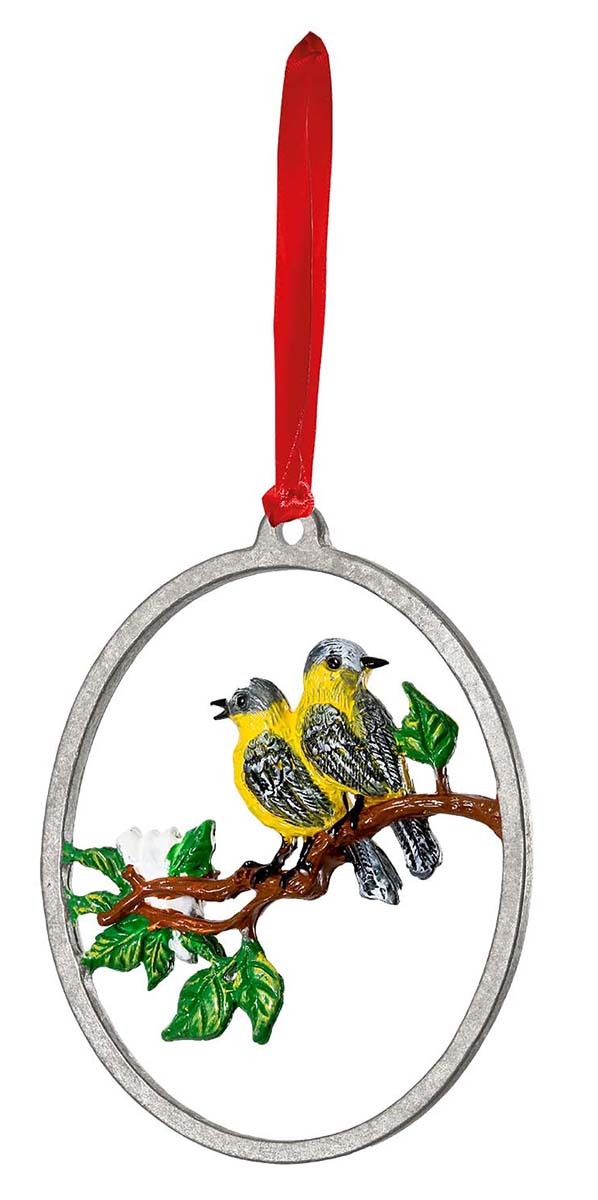 Schmücken Sie das Fenster oder eine Vase mit Zweigen mit diesem eleganten Zinnanhänger mit dem Frühlingsmotiv und lassen Sie sich von der ansteckenden Heiterkeit der Vögel inspirieren. Der Anhänger ist detailreich beidseitig handbemalt und ein echter Blickfang...