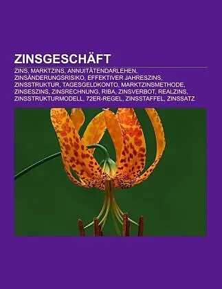 Quelle: Wikipedia. Seiten: 65. Kapitel: Zins, Marktzins, Annuitätendarlehen, Zinsänderungsrisiko, Effektiver Jahreszins, Zinsstruktur, Tagesgeldkonto, Marktzinsmethode, Zinseszins, Zinsrechnung, Riba, Zinsverbot, Realzins, Zinsstrukturmodell, 72er-Regel, Zinss...