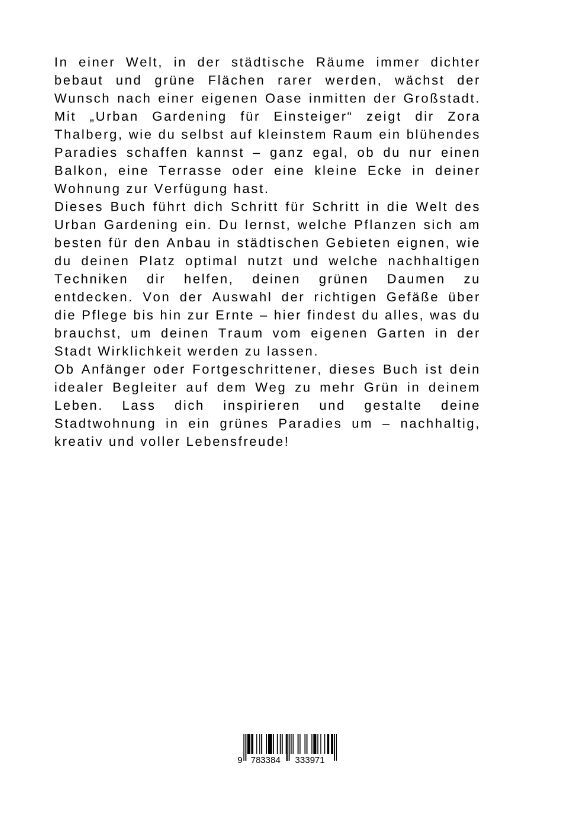 In einer Welt, in der städtische Räume immer dichter bebaut und grüne Flächen rarer werden, wächst der Wunsch nach einer eigenen Oase inmitten der Großstadt. Mit Urban Gardening für Einsteiger zeigt dir Zora Thalberg, wie du selbst auf kleinstem Raum ein blühe...