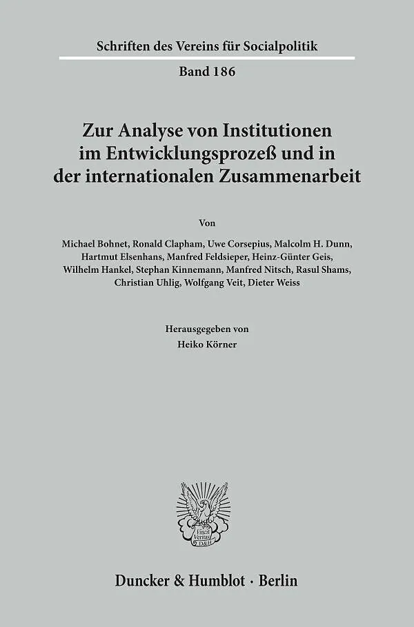 Inhalt Inhalt: R. Clapham, Erklärungsansätze der Neuen Politischen Ökonomie für entwicklungspolitische Entscheidungen - M. Nitsch, Vom Nutzen des institutionalistischen Ansatzes für die Entwicklungsökonomie - D. Weiss, Volkswirtschaftliche Beratung und Politik...